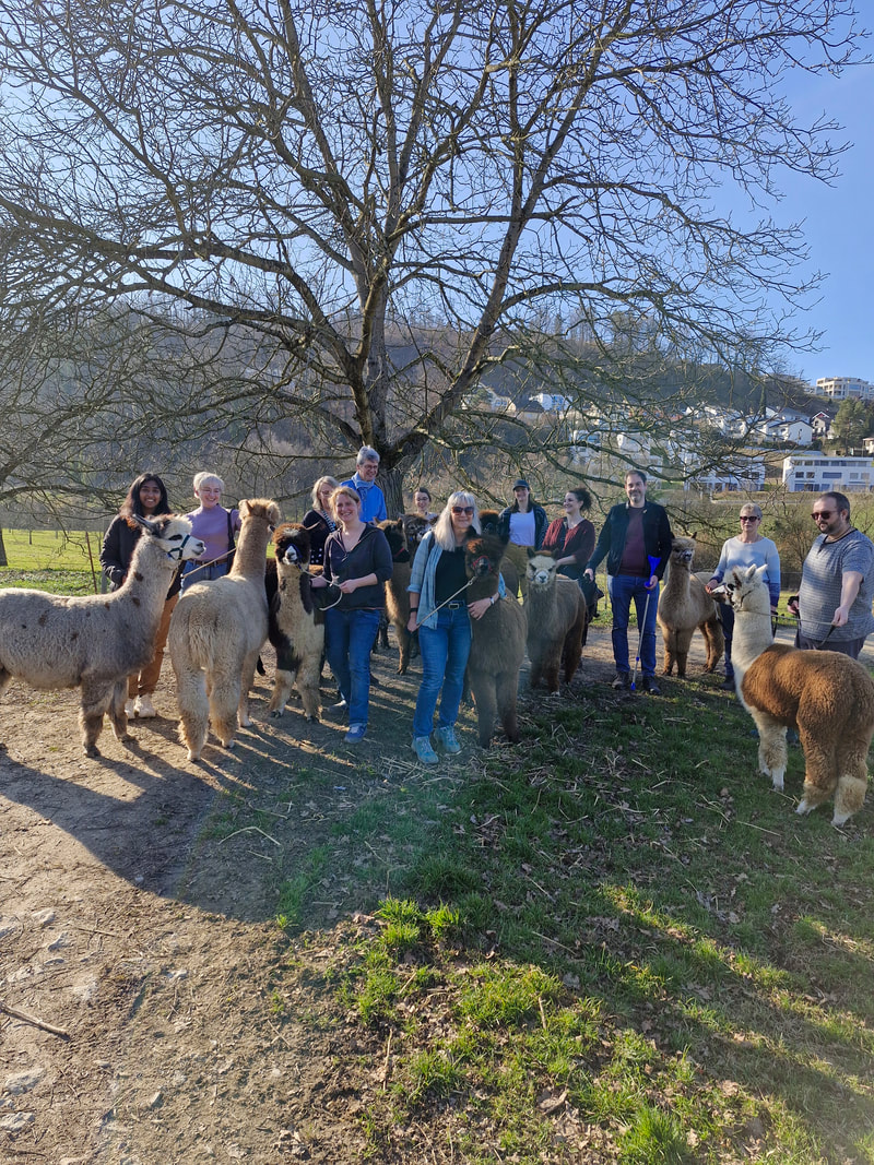 Gezielte Teamentwicklungselemente ergänzen das Alpakaerlebnis/den Teamevent. Als zertifizierte Alpakacoaches richten wir uns ganz nach euren Wünschen. Oder nach dem Auftrag von eurer Chefin/eurem Chef ;-)